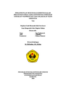 Ferdiansyah, Ega (2026) ERLINDUNGAN HUKUM BAGI DEBITUR DALAM PERJANJIAN KERJA SAMA KONSTRUKSI TERHADAP TINDAKAN WANPRESTASI YANG DILAKUKAN OLEH KREDITUR. Thesis(S2) thesis, UNIVERSITAS PASUNDAN.