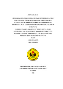 EMODELAN DINAMIKA SISTEM PENGARUH INTEGRASI RANTAI SUPLAI RAMAH LINGKUNGAN DAN PRAKTIK MANAJEMEN KUALITAS TOTAL TERHADAP KINERJA PERUSAHAAN SERTA DAMPAKNYA PADA KEBERLANJUTAN INDUSTRI MANUFAKTUR DI KARAWANG