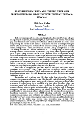 Susan Sa’adah, Nailis (2026) URGENSI PENEGAKAN HUKUM ATAS PERJUDIAN ONLINE YANG DILAKUKAN OLEH ANAK DALAM PERSPEKTIF PERATURAN PERUNDANG- UNDANGAN. Thesis(S2) thesis, UNIVERSITAS PASUNDAN.