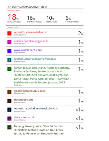 SONY DARMAWAN, DARMAWAN, SONY 220010034 (2026) PERBEDAAN TINGKAT NYERI PASCA OPERASI SECTIO CAESAREA METODE ENHANCED RECOVERY AFTER CAESAREAN SURGERY (ERACS) DAN METODE KONVENSIONAL DI RUMAH SAKIT HERMINA ARCAMANIK. Skripsi(S1) thesis, UNIVERSITAS PASUNDAN.