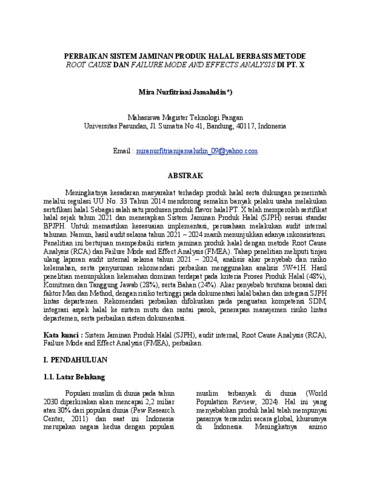 Nurfitriani Jamaludin, Mira (2026) PERBAIKAN SISTEM JAMINAN PRODUK HALAL BERBASIS METODE ROOT CAUSE DAN FAILURE MODE AND EFFECTS ANALYSIS DI PT. X. (Submitted)
