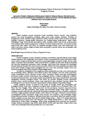 Solowi, Virani ANALISIS YURIDIS TERHADAP PENEGAKAN HUKUM TINDAK PIDANA PENGRUSAKAN FASILITAS DALAM LINGKUNGAN PARIWISATA SEBAGAI UPAYA UNTUK MENINGKATKAN PENDAPATAN ASLI DAERAH (PAD). Thesis(S2) thesis, UNIVERSITAS PASUNDAN.