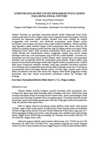 Miriam Mochamad, Alisya (2026) KOMUNIKASI DAKWAH USTADZ MUHAMMAD NUZUL DZIKRI PADA MEDIA SOSIAL YOUTUBE. Thesis(S2) thesis, UNIVERSITAS PASUNDAN.