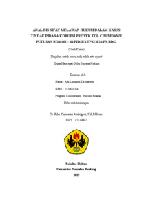 Adi Lazuardi Dermawan, Adi Lazuardi Dermawan (2025) ANALISIS SIFAT MELAWAN HUKUM DALAM KASUS TINDAK PIDANA KORUPSI PROYEK TOL CISUMDAWU PUTUSAN NOMOR : 68/PIDSUS.TPK/2024/PN.BDG. Skripsi(S1) thesis, FAKULTAS HUKUM UNIVERSITAS PASUNDAN.
