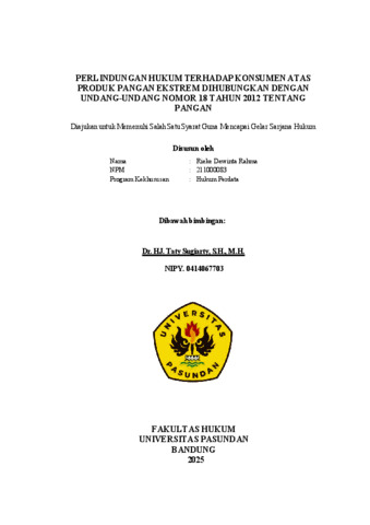 Rieke Dewinta Rahma, Rieke Dewinta Rahma (2025) PERLINDUNGANHUKUMTERHADAPKONSUMENATAS PRODUK PANGAN EKSTREM DIHUBUNGKAN DENGAN UNDANG-UNDANG NOMOR 18 TAHUN 2012 TENTANG PANGAN. Skripsi(S1) thesis, FAKULTAS HUKUM UNIVERSITAS PASUNDAN.