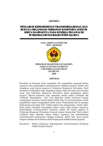 ADHITYAS DWIPUTRI, NADA (2026) PENGARUH KEPEMIMPINAN TRANSFORMASIONAL DAN BUDAYA ORGANISASI TERHADAP KOMITMEN AFEKTIF SERTA DAMPAKNYA PADA KINERJA PEGAWAI DI PUSKESMAS BUNGURSARI PURWAKARTA. Thesis(S2) thesis, UNIVERSITAS PASUNDAN.
