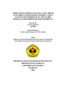 Samperura, Yozevina (2026) AKIBAT HUKUM DIBATALKANNYA AKTA HIBAH YANG DIBUAT OLEH PEJABAT PEMBUAT AKTA TANAH TANPA PERSETUJUAN AHLI WARIS DITINJAU DARI PERSPEKTIF HUKUM PERDATA. Thesis(S2) thesis, UNIVERSITAS PASUNDAN.