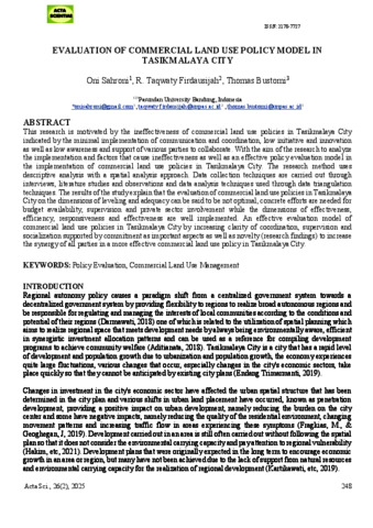 Sahroni, ONI (2026) EVALUATION OF COMMERCIAL LAND USE POLICY MODEL IN TASIKMALAYA CITY. Acta Scientiae, v. 28, (NO ;1). ISSN http://www.periodicos.ulbra.br/index.php/acta/ (Submitted)
