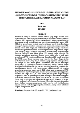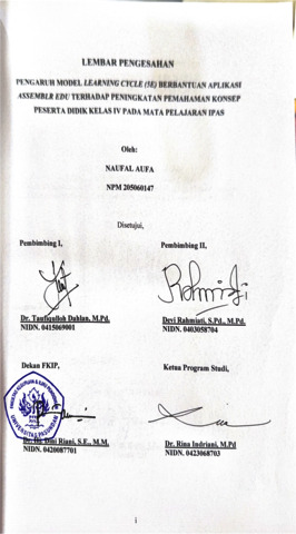 AUFA NAUFAL, 205060147 (2026) PENGARUH MODEL LEARNING CYCLE (5E) BERBANTUAN APLIKASI ASSEMBLR EDU TERHADAP PENINGKATAN PEMAHAMAN KONSEP PESERTA DIDIK KELAS IV PADA MATA PELAJARAN IPAS. Skripsi(S1) thesis, FKIP UNPAS.