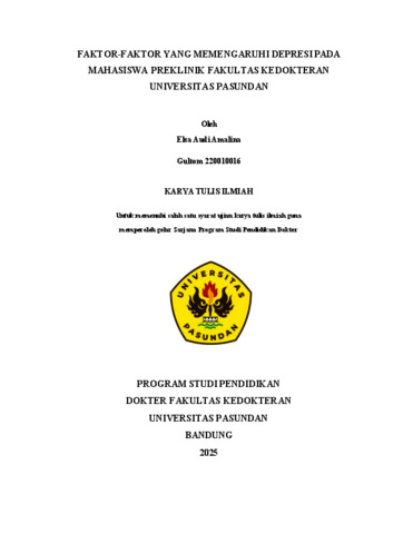 Elsa Audi Amalina Gultom, Elsa Audi Amalina Gultom (2026) FAKTOR-FAKTOR YANG MEMENGARUHI DEPRESI PADA. MAHASISWA. PREKLINIK FAKULTAS KEDOKTERAN UNIVERSITAS PASUNDAN. Skripsi(S1) thesis, UNIVERSITAS PASUNDAN.