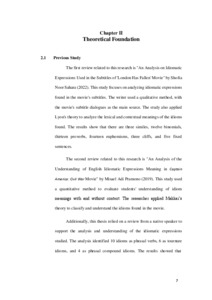 The title of this thesis is "An Analysis of Idiomatic Expression in Bon Jovi's Crush Album." The purpose of this research is to identify the types of idioms and their meanings found in the lyrics of Bon Jovi's Crush album. The songs in the Crush album contain complex lyrics filled with idiomatic expressions. This study employs a qualitative descriptive method. To analyze the idioms, M.A.K. Halliday’s theory from his book An Introduction to Functional Grammar is used. Halliday identifies five types of idioms: Literal Idiom, Non-Literal Idiom, Proverbial Idiom, Regional Idiom, and Slang Idiom. First, the idioms in the song lyrics were identified, and then their meanings were analyzed using Leech’s theory of meaning. The theory includes seven types of meaning: conceptual meaning, connotative meaning, social meaning, affective meaning, reflected meaning, collocative meaning, and thematic meaning. The results of the study show that the most frequently found idiom type in the album’s lyrics is the Non-Literal Idiom, with 35 examples. This is followed by the Proverbial Idiom with 14 examples, while the least frequent type is the Regional Idiom with 6 examples. In terms of meaning, the most dominant type is the affective meaning with 36 examples. The next most dominant type is the connotative meaning with 26 examples. The least frequent types of meaning are the reflected meaning and thematic meaning, with 3 examples each. Keywords: Bon Jovi, Idioms, Lyrics, Meaning