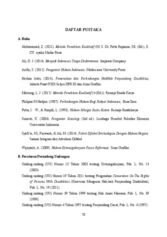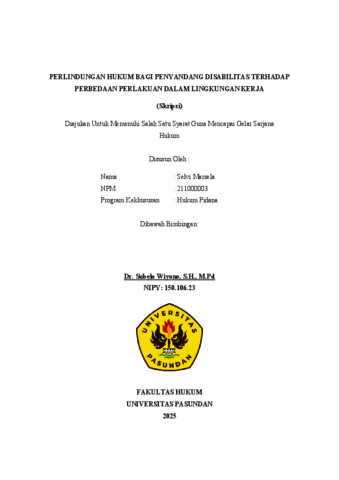 Selvi Marsela, Selvi Marsela (2025) PERLINDUNGAN HUKUM BAGI PENYANDANG DISABILITAS TERHADAP PERBEDAAN PERLAKUAN DALAM LINGKUNGAN KERJA. Skripsi(S1) thesis, FAKULTAS HUKUM UNIVERSITAS PASUNDAN.