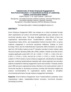 Priyana, Indarta (2026) Determinants of Green Employee Engagement in Non-Formal Education: A Comprehensive Study of Leadership, Culture, and Innovation Effects. Disertasi(S3) thesis, UNIVERSITAS PASUNDAN.