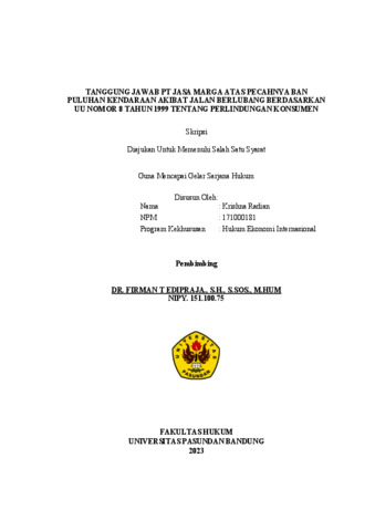 Krishna Radian, Krishna Radian (2023) TANGGUNG JAWAB PT JASA MARGA ATAS PECAHNYA BAN PULUHAN KENDARAAN AKIBAT JALAN BERLUBANG BERDASARKAN UU NOMOR 8 TAHUN 1999 TENTANG PERLINDUNGAN KONSUMEN. Skripsi(S1) thesis, FAKULTAS HUKUM UNIVERSITAS PASUNDAN.