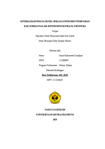Sonia Rohmawati Sondjaya, Sonia Rohmawati Sondjaya (2025) OPTIMALISASI PIDANA DENDA SEBAGAI INSTRUMEN PEMULIHAN HAK KORBAN DALAM SISTEM HUKUM PIDANA INDONESIA. Skripsi(S1) thesis, FAKULTAS HUKUM UNIVERSITAS PASUNDAN.
