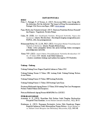 Tasya Fadillah Iskandar, Tasya Fadillah Iskandar (2025) DAMPAK PENGGUNAAN PASAL 114 AYAT (1) UNDANG - UNDANG NARKOTIKA TERHADAP SISTEM PERADILAN PIDANA INDONESIA BAGI PENGGUNA DAN KURIR. Skripsi(S1) thesis, FAKULTAS HUKUM UNIVERSITAS PASUNDAN.
