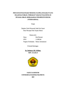 Dita Pebrianti, Dita Pebrianti (2025) PERTANGGUNGJAWABAN HUKUM ATAS PELANGGARAN YANG DILAKUKAN ISRAEL TERHADAP TAHANAN PALESTINA DI PENJARA ISRAEL BERDASARKAN PERSPEKTIF HUKUM INTERNASIONAL. Skripsi(S1) thesis, FAKULTAS HUKUM UNIVERSITAS PASUNDAN.