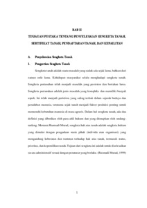 Letter C adalah catatan perihal bukti bayar atas pajak pada tanah hak milik adat. Akan tetapi, pemahaman sebagian masyarakat menganggap bahwa kedudukan Letter C merupakan bukti kepemilikan tanah, padahal Letter C bukan merupakan alat bukti yang sah. Maka, Bagaimana keabsahan buku Letter C? Bagaimana Perlindungan Hukum bagi pemegang bukti lama berupa Letter C? dan Bagaimana apabila terjadinya sengketa tumpang tindih seperti yang terjadi pada seorang warga Kota Bandung. Ahli Waris Wangsajoeda yang merupakan pewaris hak atas tanah berdasarkan Letter C di Kelurahan Cigending dengan No. Kohir 1634 No. Persil D1-251 dengan luas 20.100 m2 dan jelas tercatat bahwa tanah tersebut tidak pernah dialihkan kepada pihak lain ataupun dijadikan sebagai jaminan kepada bank? Metode Penelitian yang digunakan dalam penulisan skripsi ini adalah penelitian Hukum Normatif dengan Deskriptif Analitis yang menggambarkan suatu masalah kemudian menganalisis permasalahan yang ada dengan menggunakan data yang telah dikumpulkan kemudian diolah serta disusun yang dilandaskan pada bahan hukum pokok dan menganalisis teori-teori, konsep-konsep, asas-asas hukum peraturan hukum ataupun buku-buku kepustakaan. Hasil yang didapat dalam penelitian ini adalah bahwa keabsahan Letter C sebagai alat bukti kepemilikan tanah diatur dalam Undang-undang Pokok Agraria No. 5 Tahun 1960 dan Pemerintah No. 24 Tahun 1997 tentang pendaftaran tanah, hanya sertifikat yang diakui secara sah sebagai alat Bukti Hak atas Tanah. Juga Perlindungan Hukumnya diatur dalam Pasal 27 dan Pasal 32 Peraturan Pemerintah Nomor 24 Tahun 1997 Tentang Pendaftaran Tanah yaitu dapat dilakukan musyawarah mufakat oleh Ketua Panitia Ajudikasi dalam kegiatan pendaftaran tanah secara sistematis dan oleh Kepala Kantor Pertanahan dalam kegiatan pendaftaran tanah secara sporadik. Apabila tetap terdapat pihak yang tetap keberatan dapat mengajukan pengaduan, keberatan, dan gugatan melalui pengadilan untuk mencari kebenaran mengenai kepemilikan hak atas tanah yang sah.perlindungan hukum bagi pemegang Letter C. Dan Penyelesaian sengketa terhadap tumpang tindih terhadap kepemilikan hak atas tanah apabila ada keberatan. Salah satu pihak dapat mengajukan pembatalan sertifikat ke Pengadilan Tata Usaha Negara dengan alasan cacat yuridis karena sertifikat tersebut merupakan produk cacat hukum. Kata Kunci: Letter C, Tumpang Tindih, Pendaftaran Tanah