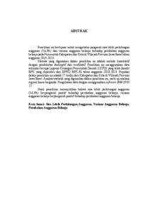 ABSTRAK Penelitian ini bertujuan untuk mengetahui pengaruh sisa lebih perhitungan anggaran (SiLPA) dan varians anggaran belanja terhadap perubahan anggaran belanja pada Pemerintah Kabupaten dan Kota di Wilayah Provinsi Jawa Barat tahun anggaran 2019-2023. Metode yang digunakan dalam penelitian ini adalah metode kuantitatif dengan pendekatan deskriptif dan verifikatif. Penelitian ini menggunakan data sekunder berupa Laporan Keuangan Pemerintah Daerah (LKPD) yang telah diaudit BPK yang diperoleh dari EPPID BPK-RI tahun anggaran 2018-2023. Populasi dalam penelitian ini adalah 27 terdiri dari Kabupaten dan Kota di Wilayah Provinsi Jawa Barat. Analisis statistik yang digunakan dalam penelitian ini, yaitu uji analisis regresi linear berganda. Pengolahan data dengan menggunakan software IBM SPSS 25. Hasil penelitian menunjukkan bahwa sisa lebih perhitungan anggaran (SiLPA) berpengaruh positif terhadap perubahan anggaran belanja, varians anggaran belanja berpengaruh positif terhadap perubahan anggaran belanja. Kata kunci: Sisa Lebih Perhitungan Anggaran, Varians Anggaran Belanja, Perubahan Anggaran Belanja