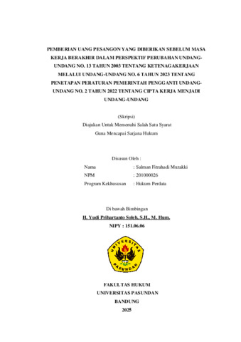 Salman Fitrahadi Muzakki, Salman Fitrahadi Muzakki (2025) PEMBERIAN UANG PESANGON YANG DIBERIKAN SEBELUM MASA KERJA BERAKHIR DALAM PERSPEKTIF PERUBAHAN UNDANG-UNDANG NO. 13 TAHUN 2003 TENTANG KETENAGAKERJAAN MELALUI UNDANG-UNDANG NO. 6 TAHUN 2023 TENTANG PENETAPAN PERATURAN PEMERINTAH PENGGANTI UNDANG-UNDANG NO. 2 TAHUN 2022 TENTANG CIPTA KERJA MENJADI UNDANG-UNDANG. Skripsi(S1) thesis, FAKULTAS HUKUM UNIVERSITAS PASUNDAN.