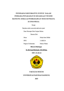 Nadya Intan Dafiah, Nadya Intan Dafiah (2025) PENERAPAN RESTORATIVE JUSTICE DALAM PERKARA PENADAHAN DI KEJAKSAAN NEGERI BANDUNG SEBAGAI PEMBAHARUAN HUKUM PIDANA DI INDONESIA. Skripsi(S1) thesis, FAKULTAS HUKUM UNIVERSITAS PASUNDAN.