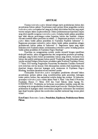 Konsep restorative justice dikenal sebagai suatu pembaharuan hukum dari penyelesaian hukum pidana. Penyelesaian suatu perkara diluar pengadilan melalui restorative justice merupakan hal yang perlu dikaji lebih dalam baik dari segi aspek teoritis maupun dalam implementasinya. Dalam pelaksanaannya diperlukan kajian yang lebih spesifik mengenai restorative justice terhadap tindak pidana penadahan agar tidak adanya pertentangan antara kepastian hukum dan keadilan. Adapun rumusan masalah dalam penelitian ini adalah : 1). Bagaimana peraturan restorative justice dalam tindak pidana penadahan di Kejaksaan Republik Indonesia? 2). Bagaimana penerapan restorative justice dalam tindak pidana penadahan sebagai pembaharuan hukum pidana di Indonesia? 3). Bagaimana upaya yang dapat dilakukan oleh Kejaksaan dalam melaksanakan restorative justice terhadap perkara tindak pidana penadahan di Kejaksaan Negeri Bandung? Penelitian ini menggunakan metode yuridis normatif dengan spesifikasi deskriptif analitis, yakni menggambarkan dan menganalisis peraturan perundangundangan yang berlaku terkait permasalahan hukum yang diteliti, termasuk teori hukum dan praktik pelaksanaan hukum positif. Pendekatan yang diterapkan adalah yuridis-normatif dengan fokus kajian mendalam pada Peraturan Kejaksaan Nomor 15 Tahun 2020 tentang Penghentian Penuntutan Berdasarkan Keadilan Restoratif serta ketentuan relevan lainnya. Data dikumpulkan melalui studi kepustakaan dan diperkuat dengan observasi lapangan serta wawancara di Kejaksaan Negeri Bandung, kemudian dianalisis secara kualitatif yuridis. Kesimpulan Restorative justice merupakan pendekatan alternatif dalam penyelesaian perkara pidana yang menitikberatkan pada pemulihan hubungan antara pelaku, korban, dan masyarakat melalui dialog dan mediasi. Di Indonesia, penerapan restorative justice diatur dalam Pasal 4, Pasal 5 dan Pasal 6 Peraturan Kejaksaan Nomor 15 Tahun 2020 dan Surat Edaran Jaksa Agung No. 01/E/EJP/02/2022. Pendekatan ini bertujuan menciptakan keadilan yang adil dan seimbang serta mengembalikan keadaan sosial seperti semula. Meskipun demikian, pelaksanaan di lapangan masih memerlukan penguatan mekanisme dan sosialisasi agar dapat berjalan optimal dan memberikan manfaat maksimal bagi semua pihak terkait. Kata Kunci: Restorative Justice, Penadahan, Kejaksaan, Pembaharuan Sistem Pidana