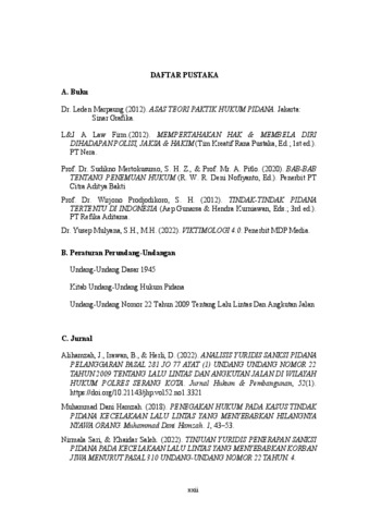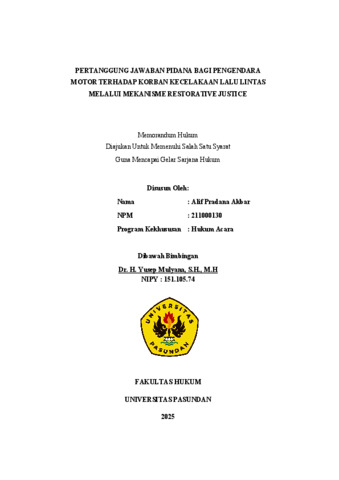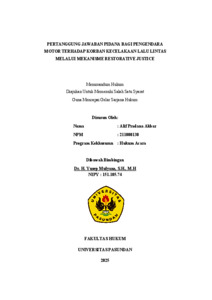 Alif Pradana Akbar, Alif Pradana Akbar (2025) PERTANGGUNG JAWABAN PIDANA BAGI PENGENDARA MOTOR TERHADAP KORBAN KECELAKAAN LALU LINTAS MELALUI MEKANISME RESTORATIVE JUSTICE. Skripsi(S1) thesis, FAKULTAS HUKUM UNIVERSITAS PASUNDAN.