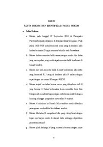 Lalu lintas di Indonesia diatur dalam Undang-Undang Nomor 22 Tahun 2009 tentang Lalu Lintas dan Angkutan Jalan, yang menetapkan peraturan untuk menjamin keamanan, ketertiban, dan kesejahteraan masyarakat dengan menetapkan perbuatan yang dilarang dan diwajibkan. Pelanggaran terhadap ketentuan-ketentuan ini merupakan tindak pidana. Kecelakaan lalu lintas adalah suatu peristiwa di jalan yang tidak diduga dan tidak disengaja yang melibatkan kendaraan dengan atau tanpa melibatkan pengguna jalan lain yang mengakibatkan korban manusia dan/atau kerugian harta benda. Alat analisis yang digunakan dalam penelitian ini adalah interpretasi gramatikal yang merupakan metode penafsiran atau interpretasi yang menekankan pada pentingnya kedudukan bahasa dalam menyampaikan makna suatu obyek. interpretasi autentik yang merupakan metode penafsiran yang penjelasannya termuat dalam Undang-Undang itu sendiri. Penelitian ini menghasilkan kesimpulan bahwa tindakan yang dilakukan Pelaku N termasuk kedalam sebuah tindak pidana pelanggaran lalu lintas dan kelalaian dalam berkendara sesuai dengan ketentuan pasal 77 Ayat (1) Undang-Undang No. 22 Tahun 2009 Tentang Lalu Lintas Dan Angkutan Jalan yang atas tindakannya tersebut dapat dikenai sanksi sesuai dengan Pasal 281 Undang-Undang No. 22 Tahun 2009 Tentang Lalu Lintas Dan Angkutan Jalan. Pelaku N juga mendapatkan akibat hukum dan dapat dikenai sanksi pidana di karenakan kelalaiannya yang mengakibatkan kecelakaan lalu lintas dan mengakibatkan kerugian bagi korban D dapat dikenai Pasal 310 Ayat (1) Undang-Undang No. 22 Tahun 2009 Tentang Lalu Lintas Dan Angkutan Jalan. Atas peristiwa ini korban dapat melakukan melaporkan tindak pidana langsung ke pihak kepolisian. Mekanisme Restorative Justice, Restorative Justice adalah suatu penyelesaian secara adil yang melibatkan pelaku, korban, keluarga mereka dan pihak lain yang terkait dalam suatu tindak pidana secara bersama-sama mencari penyelesaian terhadap tindak pidana tersebut. Kata Kunci: Informasi Lalu Lintas, Kecelakaan Lalu Lintas, Kelalaian Berkendara, Mekanisme Restorative Justice