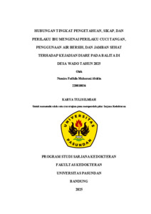 Namira Fadhila Maharani Abidin, Abidin, Namira Fadhila Maharani (2026) HUBUNGAN TINGKAT PENGETAHUAN, SIKAP, DAN PERILAKU IBU MENGENAI PERILAKU CUCI TANGAN, PENGGUNAAN AIR BERSIH, DAN JAMBAN SEHAT TERHADAP KEJADIAN DIARE PADA BALITA DI DESA WADO TAHUN 2025. Skripsi(S1) thesis, UNIVERSITAS PASUNDAN.