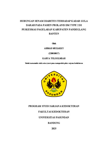 AHMAD MUZAKKY, MUZAKKY AHMAD , 220010017 (2026) HUBUNGAN SENAM DIABETES TERHADAP KADAR GULA DARAH PADA PASIEN PROLANIS DM TYPE 2 DI PUSKESMAS PAGELARAN KABUPATEN PANDEGLANG BANTEN. Skripsi(S1) thesis, UNIVERSITAS PASUNDAN.