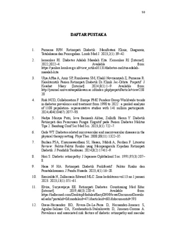 Dinda Kania Dewi Iskandar, Iskandar, Dinda Kania Dewi 220010033 (2026) PERBANDINGAN TAJAM PENGLIHATAN DAN EDEMA MAKULA ANTARA PASIEN RETINOPATI DIABETIK NONPROLIFERATIF DENGAN PROLIFERATIF DI POLI MATA RS SANTOSA CENTRAL KOTA BANDUNG PADA TAHUN 2024. Skripsi(S1) thesis, UNIVERSITAS PASUNDAN.