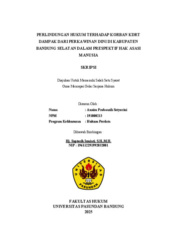 Annisa Proboasih Setyorini, Annisa Proboasih Setyorini (2025) PERLINDUNGAN HUKUM TERHADAP KORBAN KDRT DAMPAK DARI PERKAWINAN DINI DI KABUPATEN BANDUNG SELATAN DALAM PRESPEKTIF HAK ASASI MANUSIA. Skripsi(S1) thesis, FAKULTAS HUKUM UNIVERSITAS PASUNDAN.