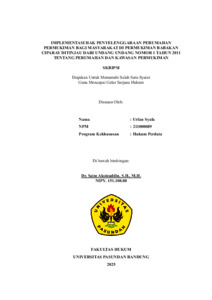 Penelitian ini bertujuan untuk mengkaji implementasi hak penyelenggaraan perumahan dan permukiman bagi masyarakat di Kecamatan Babakan Ciparay, Kota Bandung, berdasarkan ketentuan Undang-Undang Nomor 1 Tahun 2011 tentang Perumahan dan Kawasan Permukiman. Latar belakang penelitian ini didasari oleh masih banyaknya masyarakat yang tinggal di rumah tidak layak huni (RTLH), terutama di kawasan padat penduduk seperti Babakan Ciparay, yang bertentangan dengan amanat Pasal 28H ayat (1) UUD 1945 dan tujuan Undang-Undang No. 1 Tahun 2011. Permasalahan yang dikaji meliputi sejauh mana penyelenggaraan lingkungan permukiman sehat telah dilaksanakan sesuai ketentuan hukum, akibat hukum dari ketidaksesuaian realitas dengan norma hukum, serta upaya hukum yang dapat ditempuh masyarakat untuk mendapatkan hak atas hunian layak. Penelitian ini menggunakan metode pendekatan yuridis normatif dengan dukungan data empiris. Teknik pengumpulan data dilakukan melalui studi kepustakaan dan studi lapangan, termasuk wawancara dengan pejabat Kecamatan Babakan Ciparay dan Dinas Perumahan dan Kawasan Permukiman (DPKP) Kota Bandung. Hasil penelitian menunjukkan bahwa kendala utama dalam pelaksanaan hak atas perumahan yang layak mencakup terbatasnya anggaran pemerintah, proses birokrasi yang kompleks, serta rendahnya kesadaran masyarakat akan hak-hak hukum mereka. Meskipun terdapat upaya melalui program Rutilahu dan kerja sama lintas sektor, jumlah warga yang memperoleh manfaat masih belum sebanding dengan kebutuhan aktual di lapangan. Hasil Penelitian ini merekomendasikan penguatan regulasi pelaksana, peningkatan koordinasi antara instansi pemerintah, dan keterlibatan aktif masyarakat dalam proses perencanaan dan pengawasan kebijakan perumahan. Diperlukan juga penyederhanaan mekanisme akses bantuan perumahan serta perluasan skema partisipatif berbasis komunitas sebagai strategi mewujudkan lingkungan permukiman yang layak, sehat, dan berkeadilan. Kata Kunci: hak atas hunian, perumahan dan permukiman, Babakan Ciparay, Undang-Undang No. 1 Tahun 2011, rumah tidak layak huni.