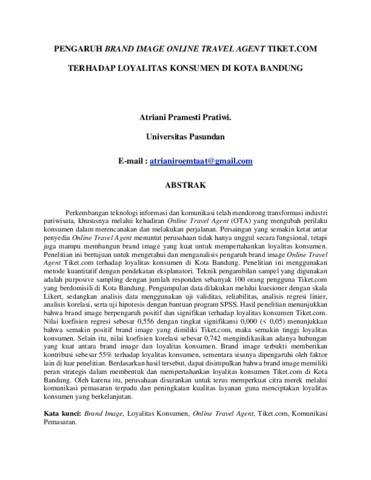 Pramesti Pratiwi, Atriani (2026) PENGARUH BRAND IMAGE ONLINE TRAVEL AGENT TIKET.COM TERHADAP LOYALITAS KONSUMEN DI KOTA BANDUNG. Thesis(S2) thesis, UNIVERSITAS PASUNDAN.