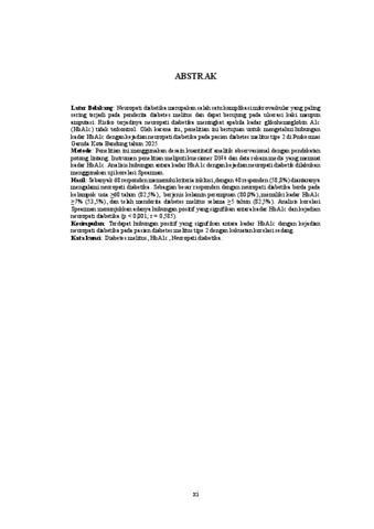 Turfa Saffanah, Saffanah Turfa, 220010015 (2026) HUBUNGAN KADAR GLIKOHEMOGLOBIN A1c (HbA1c) DENGAN KEJADIAN NEUROPATI DIABETIKA PADA PASIEN DIABETES MELITUS TIPE 2 DI PUSKESMAS GARUDA KOTA BANDUNG TAHUN 2025. Skripsi(S1) thesis, UNIVERSITAS PASUNDAN.
