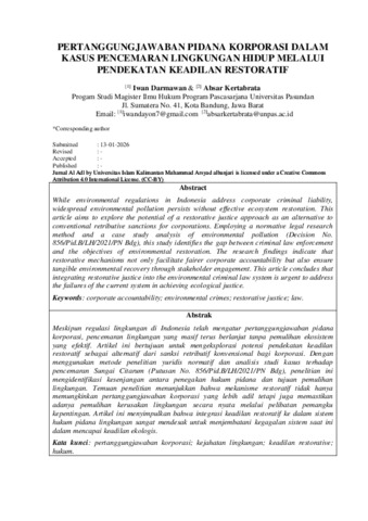 PERTANGGUNGJAWABAN PIDANA KORPORASI DALAM KASUS PENCEMARAN LINGKUNGAN HIDUP MELALUI PENDEKATAN KEADILAN RESTORATIF