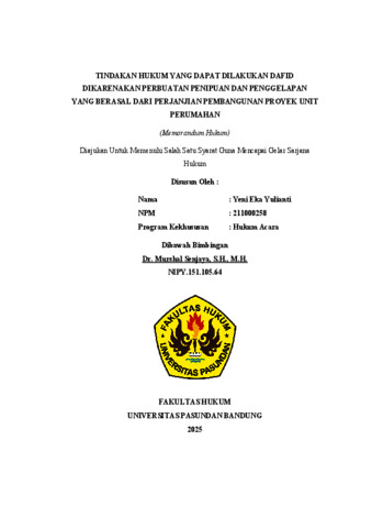 Yeni Eka Yulianti, Yeni Eka Yulianti (2025) TINDAKAN HUKUM YANG DAPAT DILAKUKAN DAFID DIKARENAKAN PERBUATAN PENIPUAN DAN PENGGELAPAN YANG BERASAL DARI PERJANJIAN PEMBANGUNAN PROYEK UNIT PERUMAHAN. Skripsi(S1) thesis, FAKULTAS HUKUM UNIVERSITAS PASUNDAN.