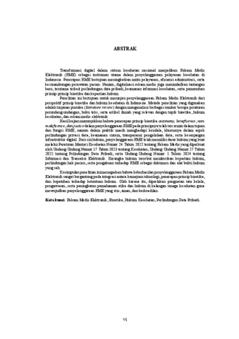 Transformasi digital dalam sistem kesehatan nasional menjadikan Rekam Medis Elektronik (RME) sebagai instrumen utama dalam penyelenggaraan pelayanan kesehatan di Indonesia. Penerapan RME bertujuan meningkatkan mutu pelayanan, efisiensi administrasi, serta kesinambungan perawatan pasien. Namun, digitalisasi rekam medis juga menimbulkan tantangan baru, terutama terkait perlindungan data pribadi, keamanan informasi kesehatan, serta pemenuhan prinsip-prinsip bioetika dan kepastian hukum. Penelitian ini bertujuan untuk meninjau penyelenggaraan Rekam Medis Elektronik dari perspektif prinsip bioetika dan hukum kesehatan di Indonesia. Metode penelitian yang digunakan adalah tinjauan pustaka (literature review) dengan menganalisis berbagai sumber berupa peraturan perundang-undangan, buku teks, serta artikel ilmiah yang relevan dengan topik bioetika, hukum kesehatan, dan rekam medis elektronik. Hasil kajian menunjukkan bahwa penerapan prinsip bioetika autonomy, beneficence, nonmaleficence, dan justice dalam penyelenggaraan RME pada prinsipnya telah tercermin dalam tujuan dan fungsi RME, namun dalam praktik masih menghadapi kendala, khususnya dalam aspek perlindungan privasi data, keamanan sistem, transparansi pengelolaan data, serta kesenjangan infrastruktur digital. Dari sisi hukum, penyelenggaraan RME telah memiliki dasar hukum yang kuat melalui Peraturan Menteri Kesehatan Nomor 24 Tahun 2022 tentang Rekam Medis yang diperkuat oleh Undang-Undang Nomor 17 Tahun 2023 tentang Kesehatan, Undang-Undang Nomor 27 Tahun 2022 tentang Pelindungan Data Pribadi, serta Undang-Undang Nomor 1 Tahun 2024 tentang Informasi dan Transaksi Elektronik. Kerangka hukum tersebut memberikan kepastian hukum, perlindungan hak pasien, serta pengakuan terhadap RME sebagai dokumen dan alat bukti hukum yang sah. Kesimpulan penelitian ini menegaskan bahwa keberhasilan penyelenggaraan Rekam Medis Elektronik sangat bergantung pada integrasi antara kemajuan teknologi, penerapan prinsip bioetika, dan kepatuhan terhadap ketentuan hukum. Oleh karena itu, diperlukan penguatan tata kelola, pengawasan, serta peningkatan pemahaman etika dan hukum di kalangan tenaga kesehatan guna mewujudkan penyelenggaraan RME yang etis, aman, dan berkeadilan. Kata kunci: Rekam Medis Elektronik, Bioetika, Hukum Kesehatan, Perlindungan Data Pribadi.