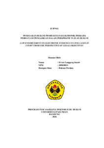 Langgeng Kaseh, Erven (2026) PENEGAKAN HUKUM PEMBUKTIAN ELEKTRONIK PERKARA PERDATA DI PENGADILAN DALAM PERSPEKTIF TUJUAN HUKUM. Disertasi(S3) thesis, UNIVERSITAS PASUNDAN.