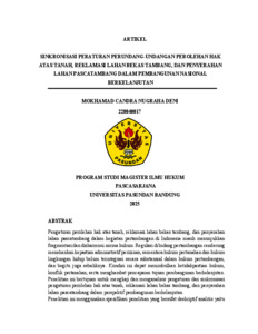 CANDRA NUGRAHA DENI, MOKHAMAD (2026) SINKRONISASI PERATURAN PERUNDANG-UNDANGAN PEROLEHAN HAK ATAS TANAH, REKLAMASI LAHAN BEKAS TAMBANG, DAN PENYERAHAN LAHAN PASCATAMBANG DALAM PEMBANGUNAN NASIONAL BERKELANJUTAN. Thesis(S2) thesis, UNIVERSITAS PASUNDAN.