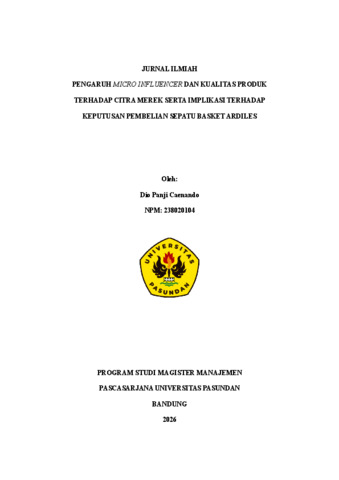Panji Caenando, Dio (2026) PENGARUH MICRO INFLUENCER DAN KUALITAS PRODUK TERHADAP CITRA MEREK SERTA IMPLIKASI TERHADAP KEPUTUSAN PEMBELIAN SEPATU BASKET ARDILES. Thesis(S2) thesis, UNIVERSITAS PASUNDAN.