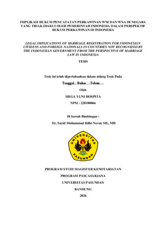 YUNI HOSPITA, MEGA (2026) IMPLIKASI HUKUM PENCATATAN PERKAWINAN WNI DAN WNA DI NEGARA YANG TIDAK DIAKUI OLEH PEMERINTAH INDONESIA DALAM PERSPEKTIF HUKUM PERKAWINAN DI INDONESIA. Thesis(S2) thesis, UNIVERSITAS PASUNDAN.