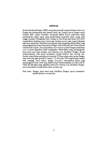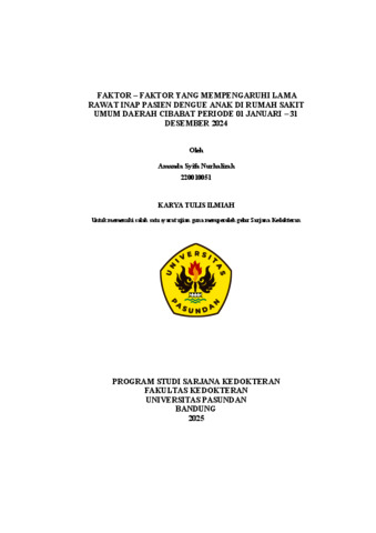 Amanda Syifa Nurhalizah, Nurhalizah, Amanda Syifa 220010051 (2026) FAKTOR – FAKTOR YANG MEMPENGARUHI LAMA RAWAT INAP PASIEN DENGUE ANAK DI RUMAH SAKIT UMUM DAERAH CIBABAT PERIODE 01 JANUARI – 31 DESEMBER 2024. Skripsi(S1) thesis, UNIVERSITAS PASUNDAN.