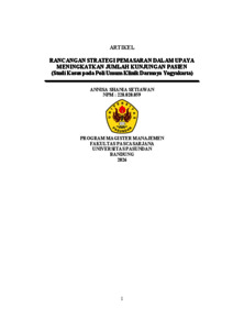 RANCANGAN STRATEGI PEMASARAN DALAM UPAYA MENINGKATKAN JUMLAH KUNJUNGAN PASIEN (Studi Kasus pada Poli Umum Klinik Darmaya Yogyakarta)