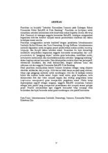 Penelitian ini berjudul “Interaksi Komunikasi Sunmori pada Kalangan Bikers Komunitas Motor BabyRR di Kota Bandung”. Penelitian ini bertujuan untuk memahami interaksi komunikasi serta konstruksi makna kegiatan Sunday Morning Ride (Sunmori) di kalangan anggota komunitas BabyRR, sekaligus menganalisis bagaimana aktivitas tersebut menjadi sarana pembentukan eksistensi diri dalam kehidupan sosial mereka. Penelitian menggunakan metode kualitatif dengan pendekatan Interaksionisme Simbolik Herbert Blumer dan Teori Dramaturgi Erving Goffman. Interaksionisme simbolik digunakan untuk mengkaji proses pembentukan makna melalui meaning, language, dan thought dalam interaksi sosial. Sementara itu, teori dramaturgi membantu menjelaskan bagaimana anggota komunitas menampilkan diri (self- presentation) di “panggung depan” melalui gaya berkendara, modifikasi motor, serta konten media sosial, dan membedakannya dari interaksi “panggung belakang” dalam lingkup internal komunitas. Data dikumpulkan melalui observasi partisipatif, wawancara mendalam, dan studi dokumentasi, dengan informan kunci dan informan inti dari anggota Komunitas BabyRR Kota Bandung. Hasil penelitian menunjukkan bahwa Sunmori dimaknai sebagai ruang ekspresi identitas, solidaritas, dan prestige. Aktivitas ini tidak hanya menjadi ajang rekreasi, tetapi juga panggung simbolik untuk membangun citra diri di hadapan sesama bikers dan audiens media sosial. Aspek visual motor, gaya berpakaian, serta dokumentasi foto dan video menjadi bagian dari strategi pengelolaan kesan (impression management) guna memperoleh pengakuan sosial. Meski kerap dipersepsikan negatif sebagai arogansi, anggota BabyRR memaknai Sunmori sebagai hobi positif yang mempererat persaudaraan dan menjadi sarana pelepas penat. Peneliti menyarankan agar anggota komunitas tetap menjaga etika berkendara dan bijak bermedia sosial guna membangun citra positif komunitas. Kata Kunci: Interaksionisme Simbolik, Dramaturgi, Sunmori, Komunitas Motor, Eksistensi Diri