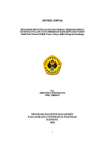 NURAMALINA, AMELINDA (2026) PENGARUH MUTU PELAYANAN DAN HARGA TERHADAP MINAT KUNJUNGAN ULANG YANG DIMEDIASI OLEH KEPUASAN PASIEN (Studi Pada Pasien di Klinik Utama Cahaya Qalbu Kabupaten Bandung). Thesis(S2) thesis, UNIVERSITAS PASUNDAN.