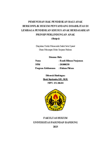 Randi Hilman Nurjaman, Randi Hilman Nurjaman (2025) PEMENUHAN HAK PENDIDIKAN BAGI ANAK BERKONFLIK HUKUM PENYANDANG DISABILITAS DI LEMBAGA PENDIDIKAN KHUSUS ANAK BERDASARKAN PRINSIP PERLINDUNGAN ANAK. Skripsi(S1) thesis, FAKULTAS HUKUM UNIVERSITAS PASUNDAN.