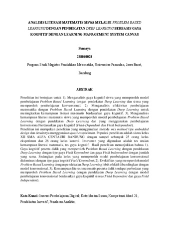 Sunarya (2026) ANALISIS LITERASI MATEMATIS SISWA MELALUI PROBLEM BASED LEARNING DENGAN PENDEKATAN DEEP LEARNING BERBASIS GAYA KOGNITIF DENGAN LEARNING MANAGEMENT SYSTEM CANVAS. Thesis(S2) thesis, UNIVERSITAS PASUNDAN.