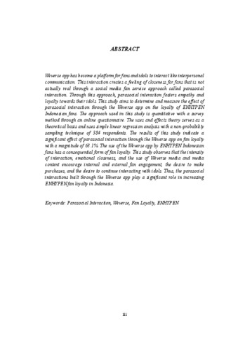 Safera, Azmi Husnah (2026) PENGARUH INTERAKSI PARASOSIAL MELALUI APLIKASI WEVERSE TERHADAP LOYALITAS PENGGEMAR ENHYPEN INDONESIA. Skripsi(S1) thesis, FISIP UNPAS.