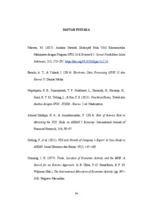 MOHAMAD RIZKI, 214030006 and Dr.H.Tete Saepudin ,SE,MSi, Pembimbing (2025) ANALISIS PENGARUH GROSS DOMESTIC PRODUCT, NILAI TUKAR, DAN TINGKAT SUKU BUNGA TERHADAP FOREIGN DIRECT INVESTMENT DI 5 NEGARA ASEAN TAHUN 2013 – 2023 SKRIPSI Untuk Memenuhi Salah Satu Syarat Sidang Skripsi Guna Memproleh Gelar Sarjana Ekonomi Oleh: MOHAMAD RIZKI 214030006 PROGRAM STUDI EKONOMI PEMBANGUNAN FAKULTAS EKONOMI DAN BISNIS UNIVERSITAS PASUNDAN BANDUNG 2025. Skripsi(S1) thesis, Universitas Pasundan Bandung.